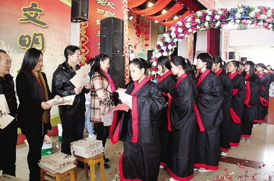 学生接受师长赠送的成年纪念册。唐艳丽 刘祥云/摄