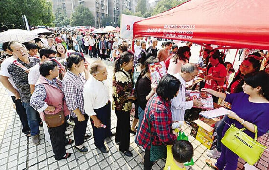 随着生活水平的提高,居民更讲究健康养生。19日,为了引导中老年人健康饮酒,湖南远东健康养生产业发展有限公司向本报提供500瓶威力神养生酒,免费向市民发放。活动现场,威力神酒免费派发处排起了长队,由于居民实在太多,工作人员不得不将一对分成两队,增加人员进行发放。