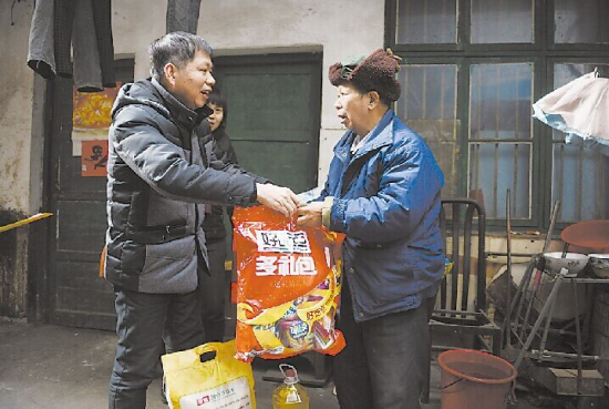 2014年1月15日,爱心人士为贫困居民送年货(资料图) 记者谢慧/摄