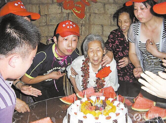 晚报义工刘军为80岁孤寡老人祝寿(资料图) 记者 张媛/摄