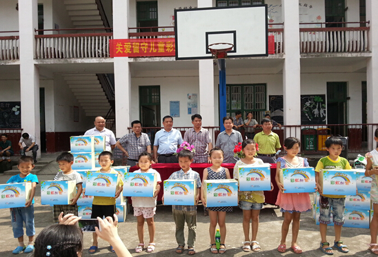 株洲县人口计生局局长何立新、县计生协常务副会长王高存、株洲县邮政局局长唐安明、淦田镇镇长张兴等领导和八斗小学全体师生参加了赠送仪式,100余名留守儿童当场接受了“彩虹邮包”。