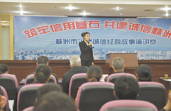 2014年12月31日,株洲市委宣传部联合工商局举办了一场企业诚信演讲赛。演讲赛主题为“筑牢信用基石,共建诚信株洲”,旨在发掘、宣传诚信人物、诚信企业,发挥典型示范作用,进一步推进株洲市诚信建设制度化,营造诚信经营氛围。参赛选手来自全市11个企业。