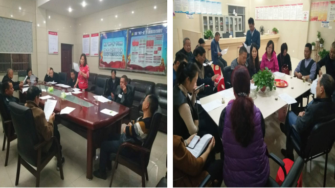 2017年11月10日晚,金钩山村党总支以支部为单位召集所有党员召开宣传十九大精神会议。