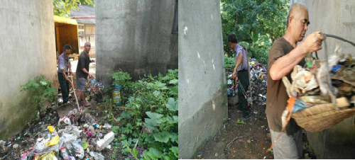 为维护我辖区内环境卫生干净整洁,8月5日下午,金钩山村老党员顶着烈日在村内开展义务劳动,在辖区内清除生活垃圾。