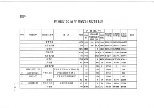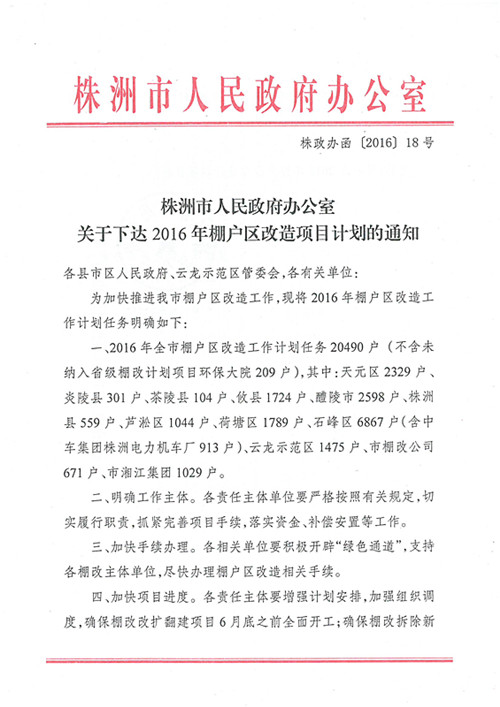 株洲市人民政府办公室关于下达2016年棚户区改造项目计划的通知