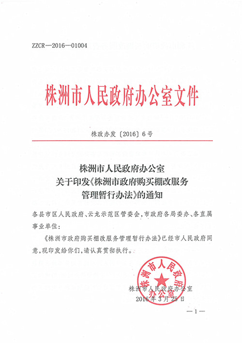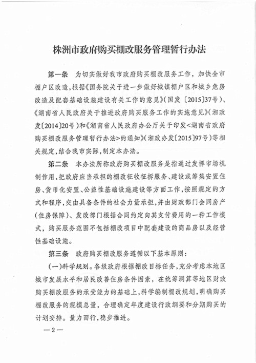 株洲市人民政府办公室关于印发《株洲市政府购买棚改服务管理暂行办法》的通知