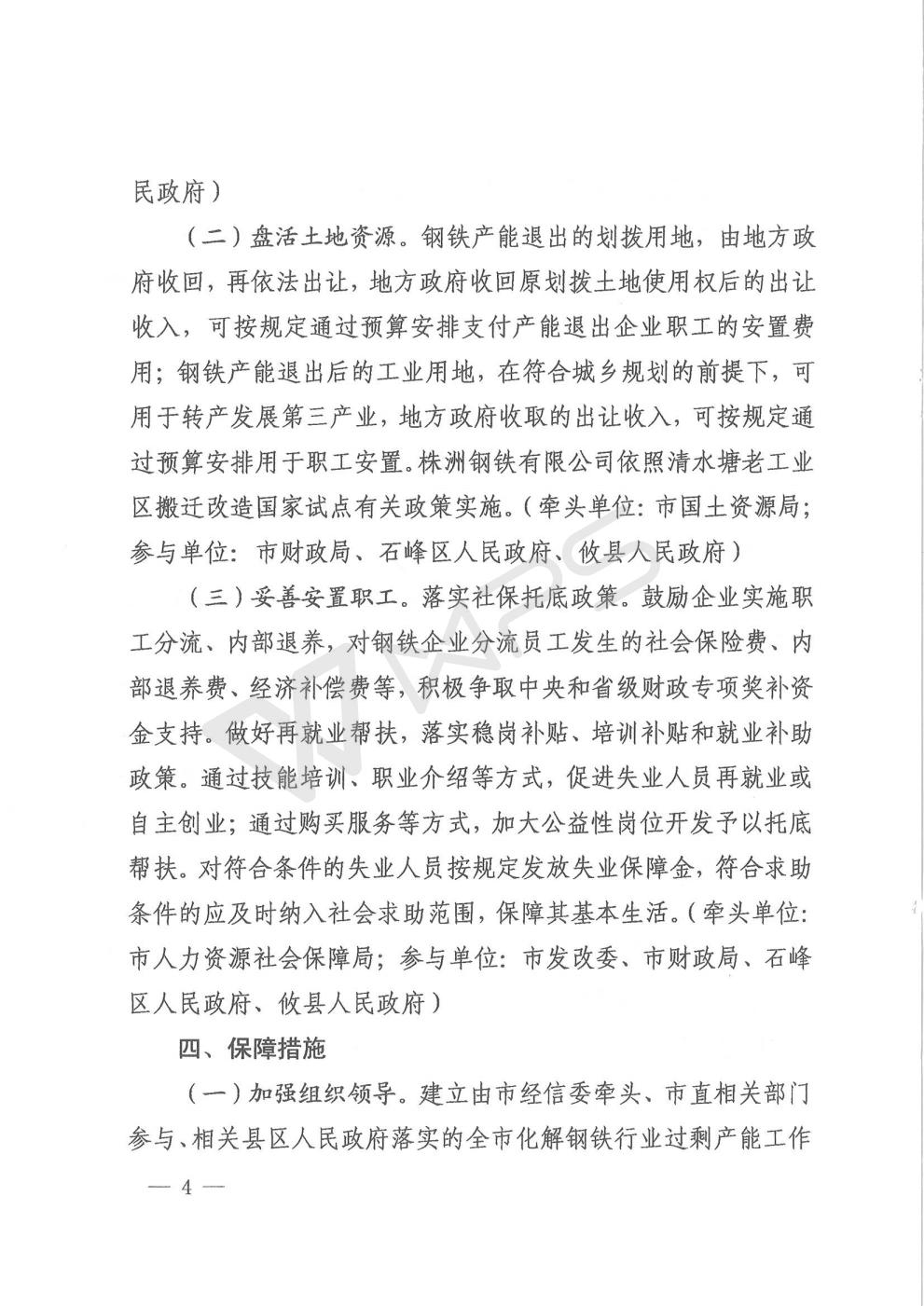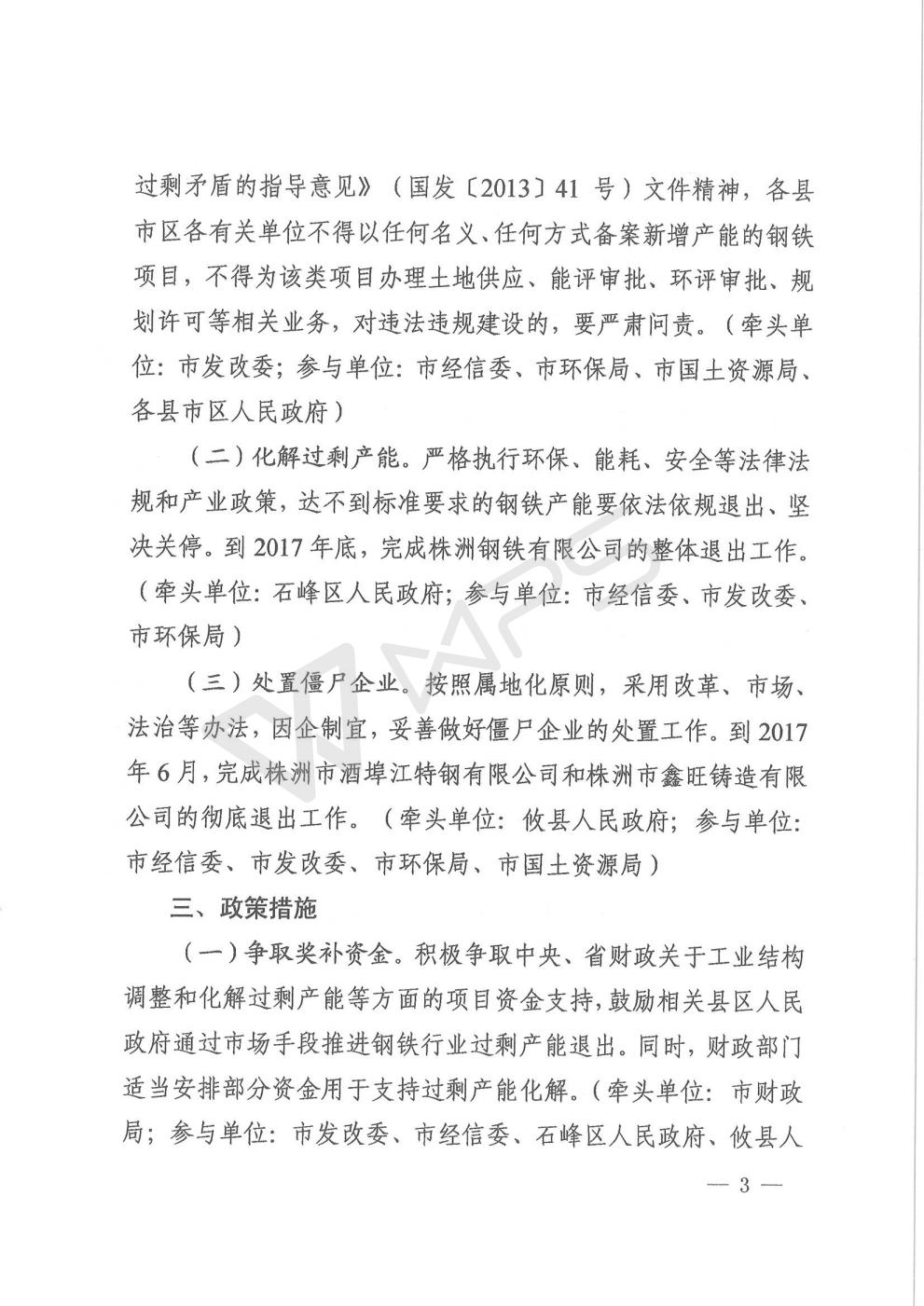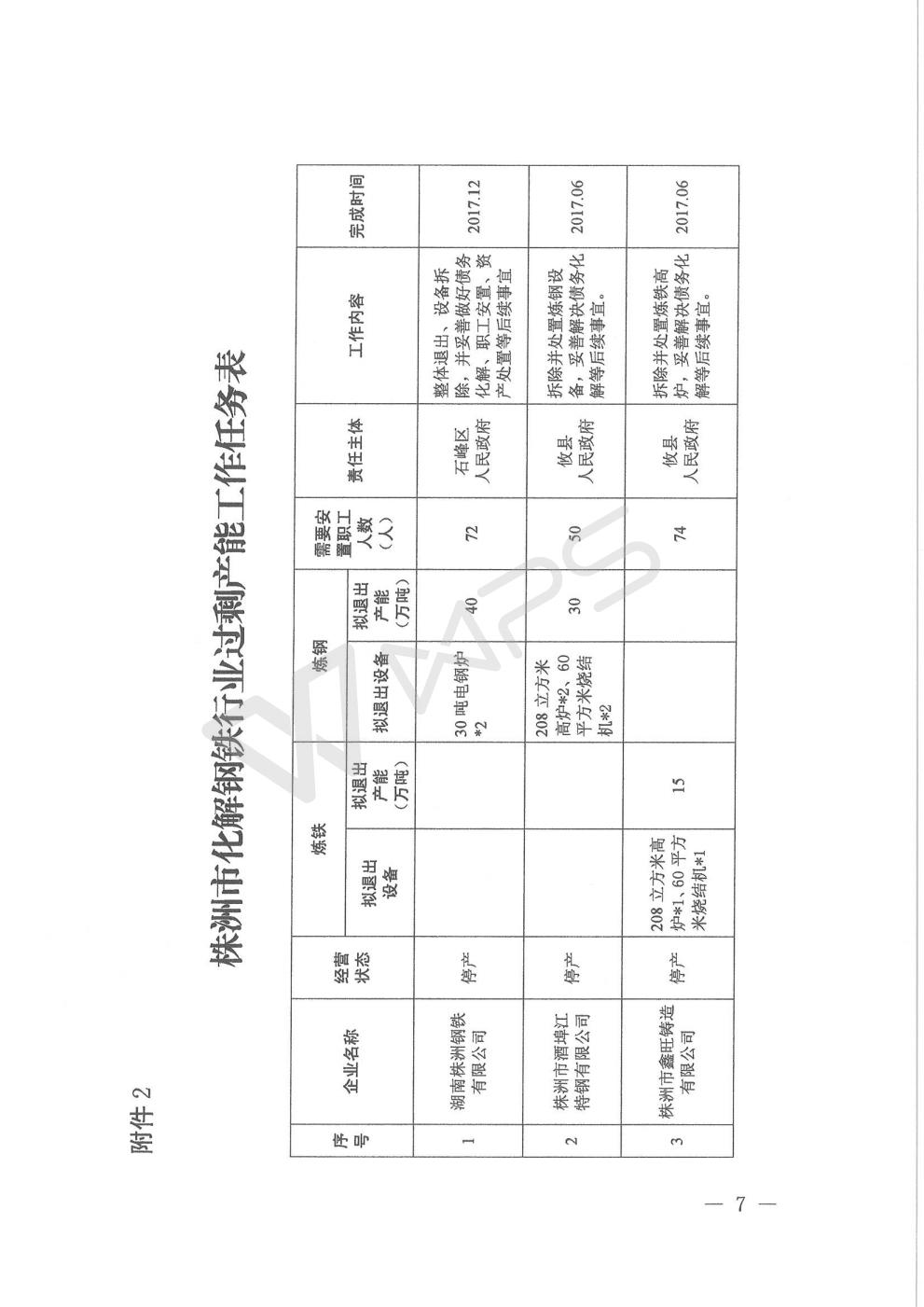 株洲市人民政府办公室关于印发《株洲市化解钢铁行业过剩产能实施方案》的通知